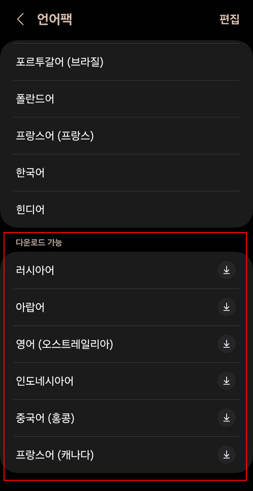 이제 다운로드 가능한 언어를 선택해 필요한 언어를 스마트폰으로 다운로드하면 됩니다.