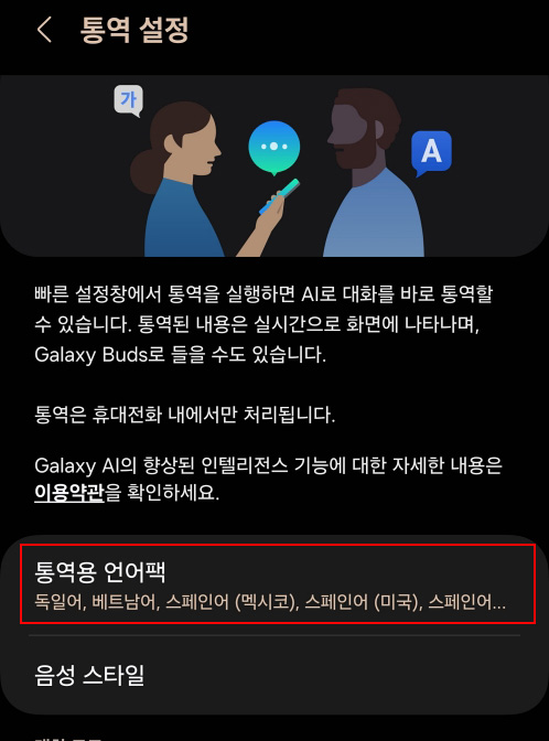갤럭시 AI 언어팩 다운로드 하기