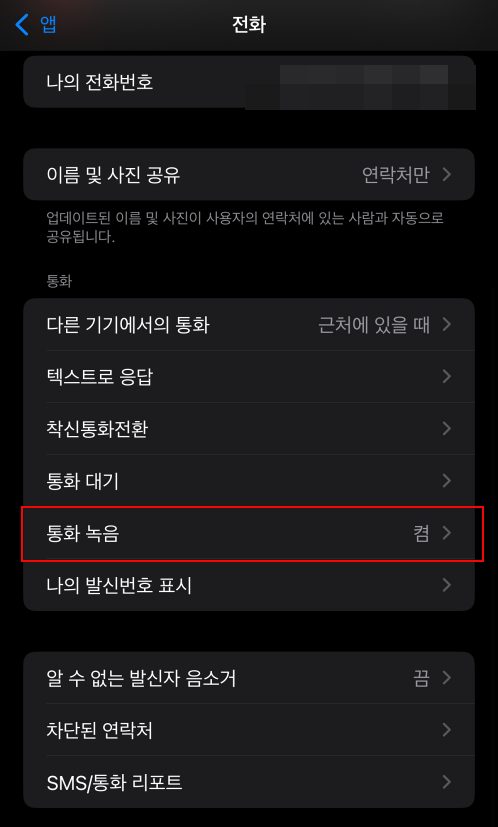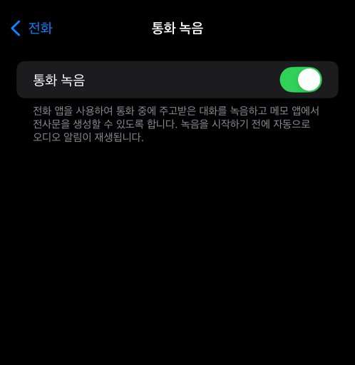 참고로 아이폰 통화 녹음은 기본 전화앱에서만 작동합니다.
