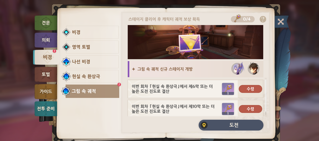 '현실 속 환상극'은 별을 모두 획득하지 않고 일단 클리어만 해도 보상은 모두 받을 수 있습니다.