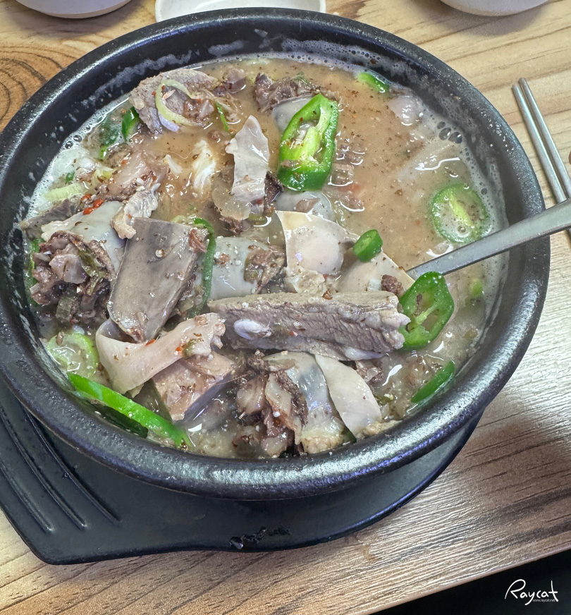 양이 푸짐해서 바로 밥을 넣으면 넘쳐흐르기 때문에 순대와 내장 고기를 들어서 먹고 밥을 말아야 한다.