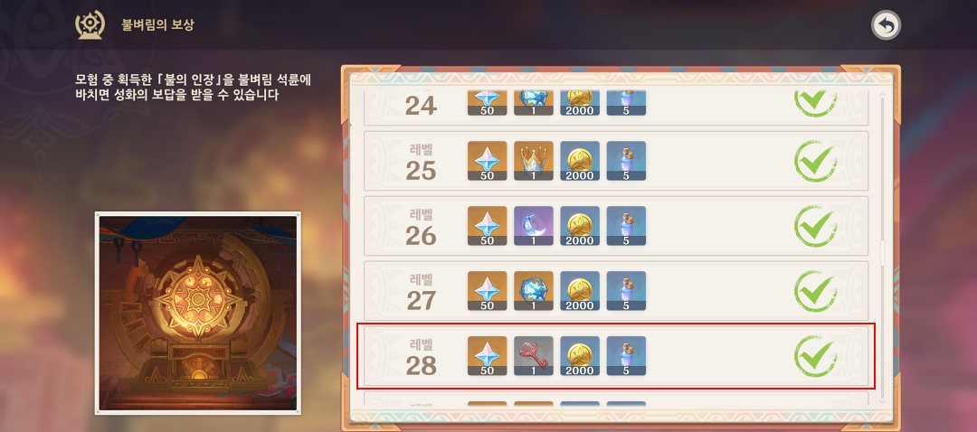 신전 28 레벨에 지령감실 열쇠 획득할 수 있습니다.