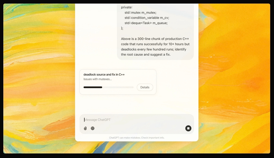 단 결과를 도출해 내기 위해 답변 생성에 시간이 더 소요될 수 있기 때문에, ChatGPT는 진행 상태 바를 표시하며 사용자가 다른 대화로 전환할 경우 앱 내 알림을 통해 진행 상황을 확인할 수 있습니다.