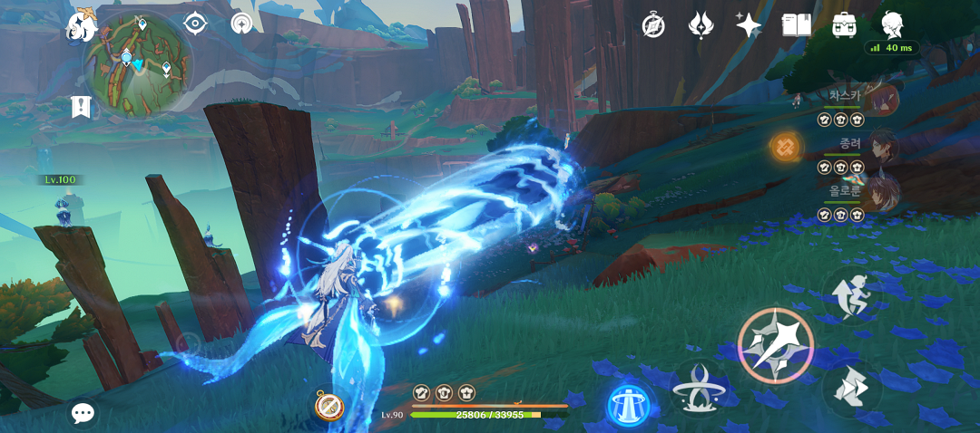 그냥 강공격으로 꾹 누르고 있으면 회전하며 다수전이든 단일전이든 아주 편하게 사용할 수 있으며 몹이 물 면역이 아닌 이상 느비예트는 모든 조합에서 메인딜러로 활약할 수 있습니다.
