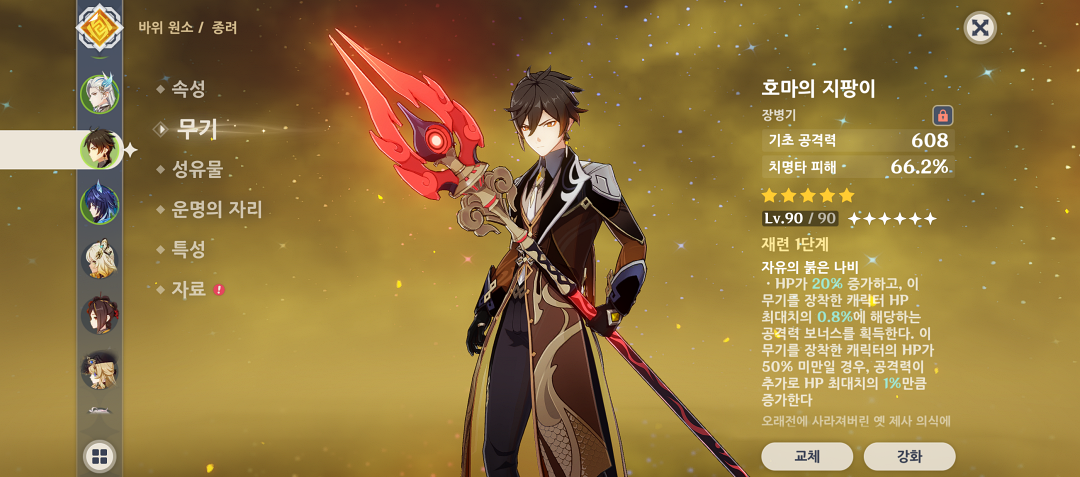 그리고 이번 무기 기원은 솔직히 종려의 전용 무기인 '관홍의 창' 때문에 추천하지 않습니다.