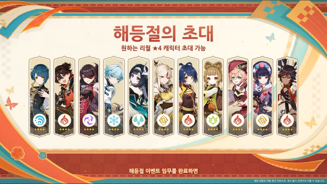 5.3 버전 후반부 한정 기원에 참여하지 않는다면 신규 캐릭터중 남연이 후반부 픽업에 있는데 해등절 이벤트로 일단 명함은 획득할 수 있습니다.
