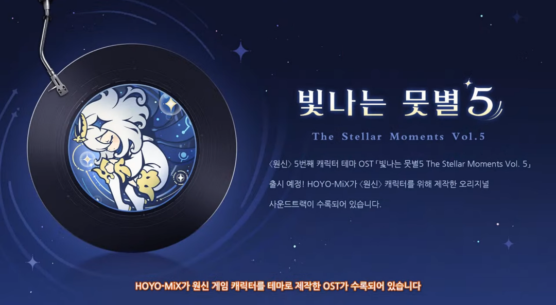원신을 좋아하는 이유 중 하나가 OST 때문인데 5.3 버전에 오리지널 사운드트랙 '빛나는 뭇별 5집'이 출시됩니다.