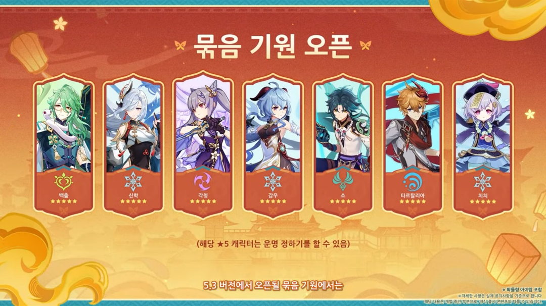 그러면 빠르게 2025년 1월 1일부터 시작할 원신 5.3 버전 전, 후반부 기원부터 확인해 보겠습니다.