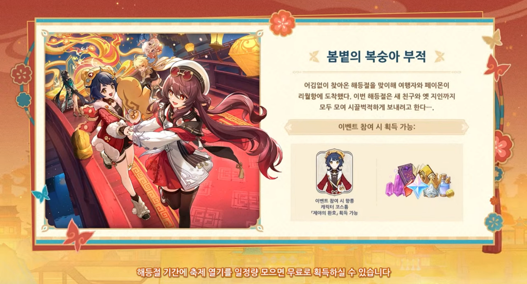 그리고 해등절은 원신 이벤트 중에 가장 많은 보상을 주는 이벤트이기도 합니다.