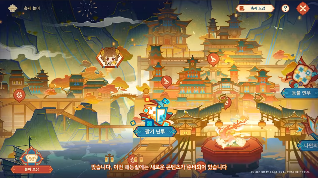 해등절은 여러 보상과 함께 다양한 미니 게임을 즐길 수 있는데 기존 해등절에 진행했던 미니 게임이 아닌 새로운 게임도 보입니다.