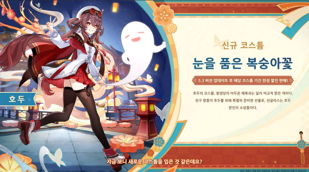 바로 호두와 향릉의 신규 코스튬으로 기존처럼 창세의 결정으로 구매할 수 있으며 향릉의 코스튬은 해등절 이벤트로 무료로 획득할 수 있습니다.