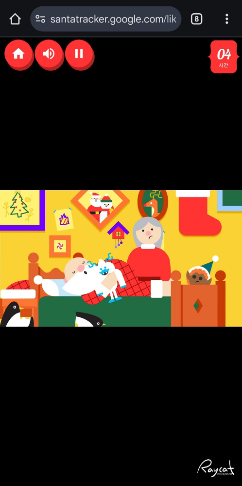 위치 정보를 허용해주고 산타 추적기를 클릭해 보면 시간에 따라 다르지만 아직까지 산타클로스가 잠에 푹 빠져 있네요.