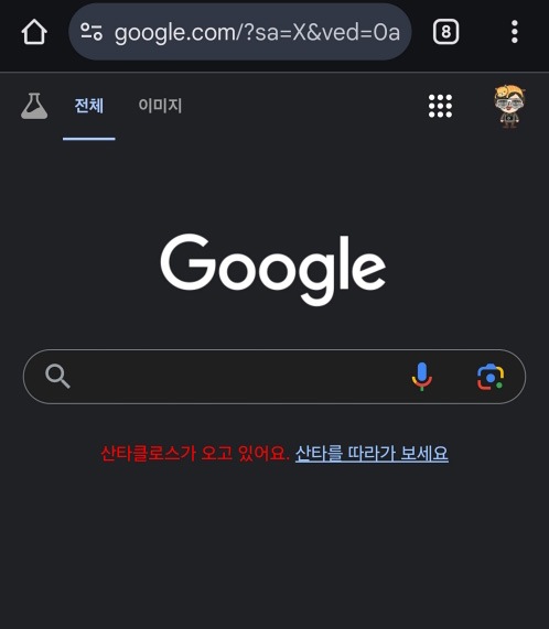바로 산타 추적기로 구글 검색창에서 랜덤하게 볼 수 있으며 혹은 검색으로 '산타 추적기'를 입력하면 확인 할 수 있습니다.