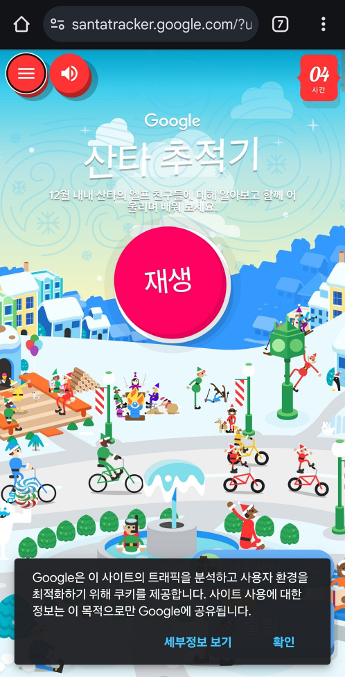일년에 크리스마스 이브에 딱 25시간 등장하는 이스터 에그지만 예전에는 단순히 가상의 위치를 보여줬는데 지금은 기능이 늘어나 게임처럼 즐길수 있습니다.