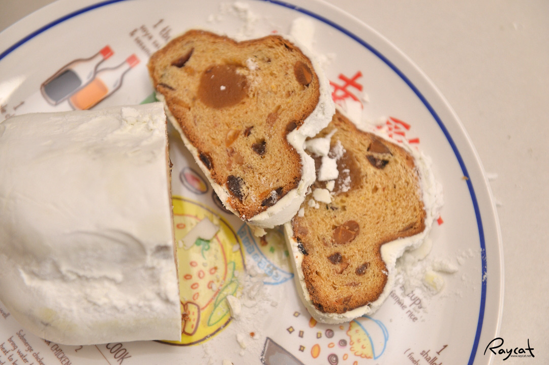 빵에 설탕에 절인 말린과일과 함께 견과류 등을 넣고 그 위에 흰 눈처럼 슈가파우더를 쌓아서 만드는 독일의 전통빵 중에 하나입니다.