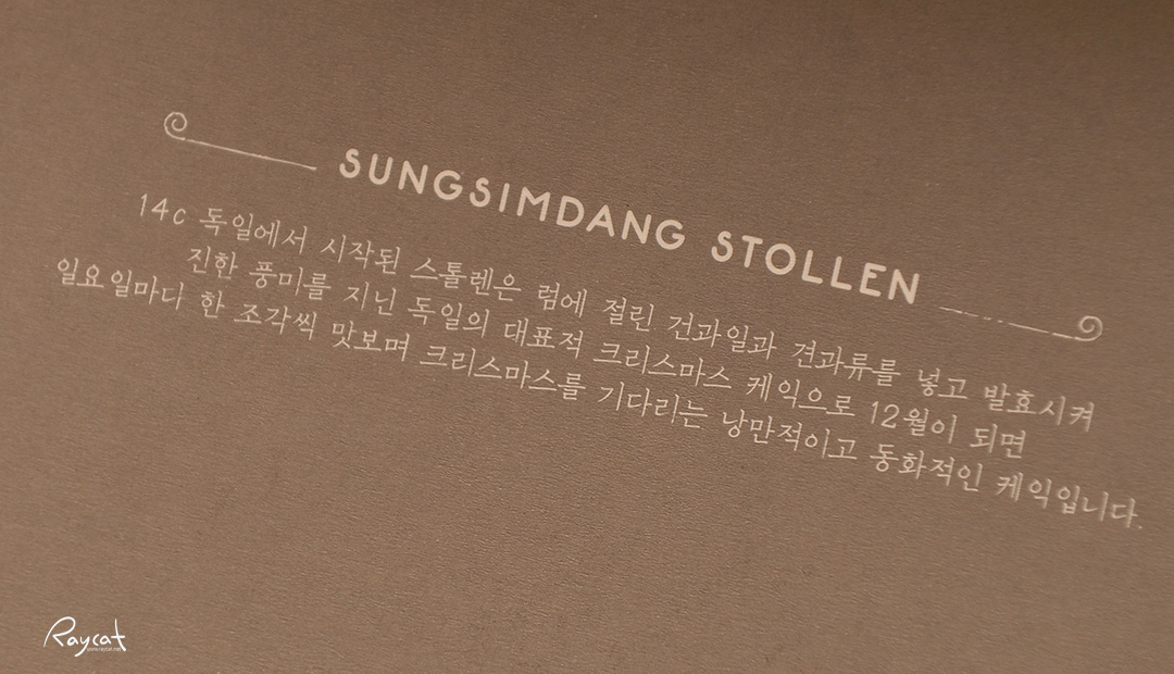 성심당의 크리스마스 케이크가 유명한데 비해 스톨렌은 호불호가 좀 있을 것 같은데 그냥 먹는 것보다 커피나 아니면 우유와 함께 먹으면 더 좋을 것 같습니다.