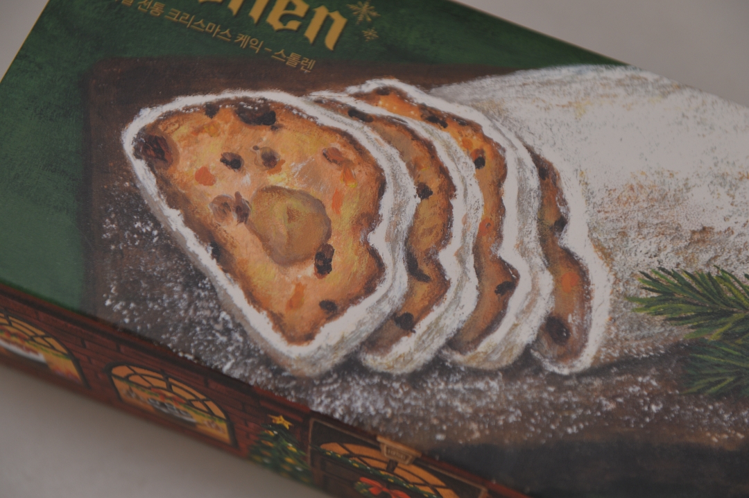 패키지 안쪽에 스톨렌의 역사에 대해 적혀 있는데 14세기 독일에서 만들어진 대표 크리스마스 케이크로 12월이 되며 일요일마다 한 조각씩 맛보며 크리스마스를 기다리는 케이크라고 되어 있습니다.