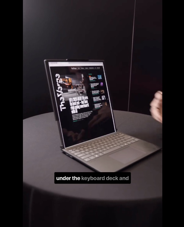 이 노트북은 키보드 전용 버튼을 누르거나 PC 웹캠에 손동작을 인식시켜 화면을 확장할 수 있는데 확장 과정에서 노트북 모터에서 약 10초 정도 큰 소리가 난다고 합니다.