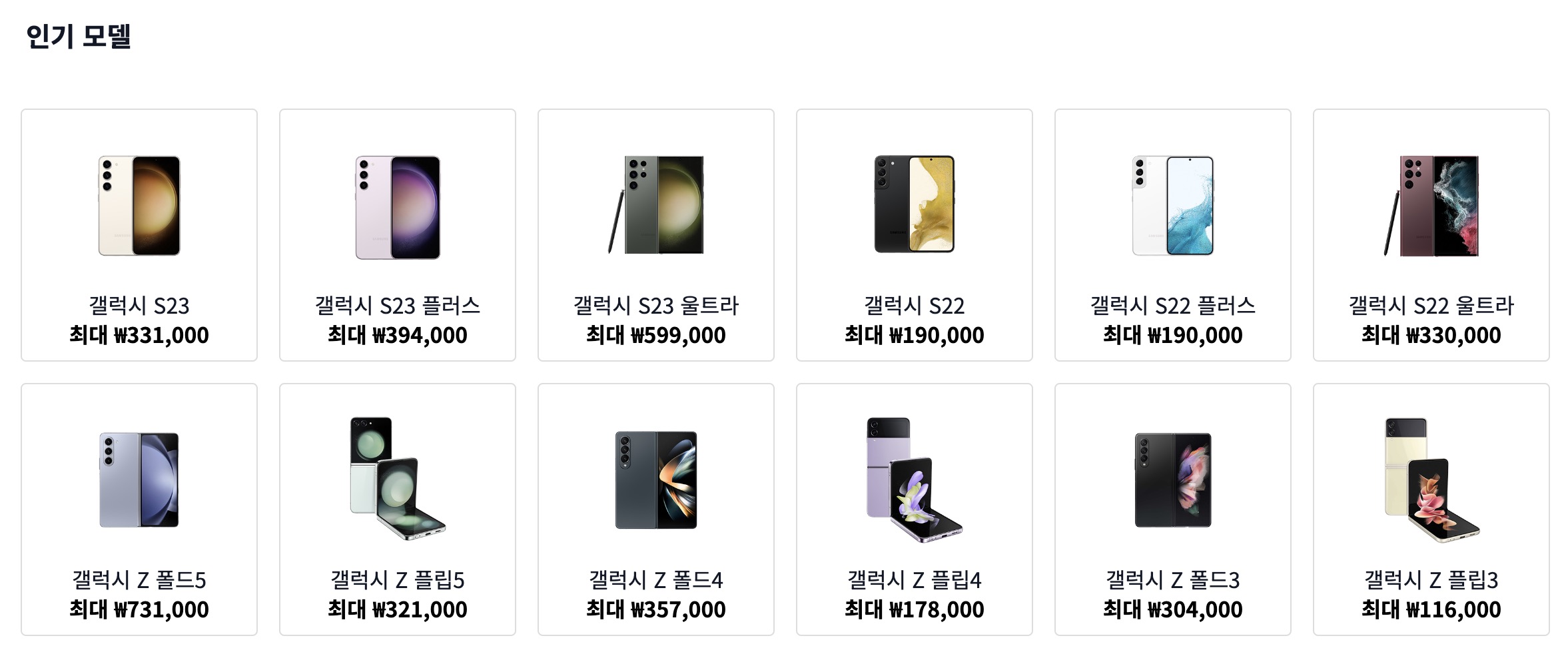 그리고 간편 보상을 이용하실 수 있는 디바이스는 현재 국내 출시된 갤럭시 스마트폰에 한정이며 갤럭시 S시리즈(FE 포함) S23, S22, S21, S20 시리즈 및 갤럭시 Z시리즈 폴드5, 플립5, 폴드4, 플립4, 폴드3, 플립3 모델을 매입하고 있습니다.
