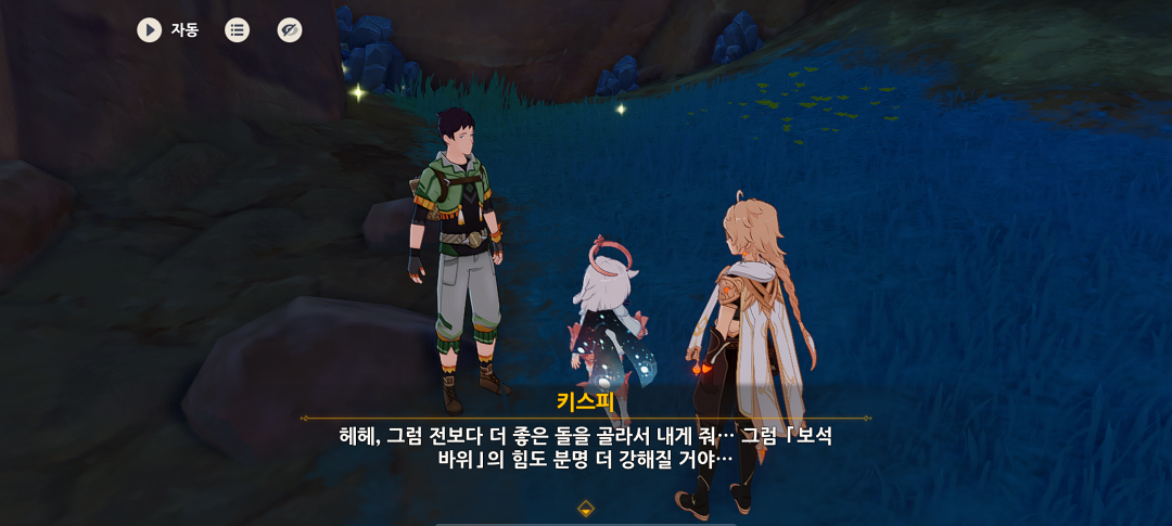 다음날 다시 가서 대화를 하면 또 보석 바위에게 먹일 돌을 구해달라고 하며 한등급 더 높은 광석을 요구합니다.