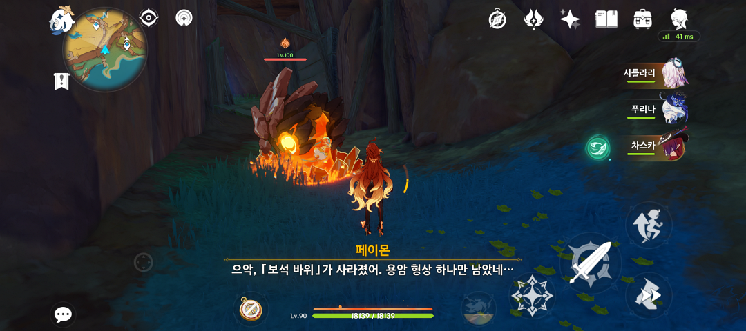 이렇게 반복하고 마지막날 만상석을 가져와 보석 바위에게 먹이면 된다고 하면서 만상석을 가져다 달라고 합니다.