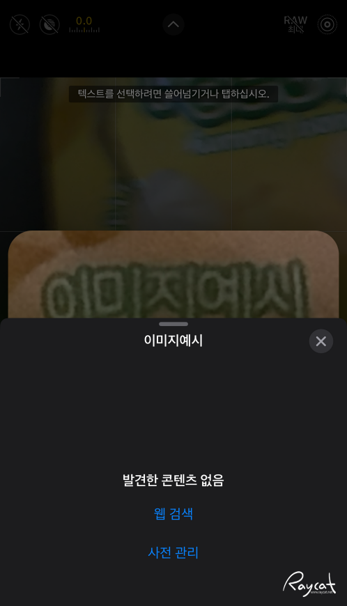 아이폰 카메라에 인식된 '이미지예시'란 텍스트를 검색해 보면 AI 검색의 예시를 보여주며 그 뜻을 알려줍니다.