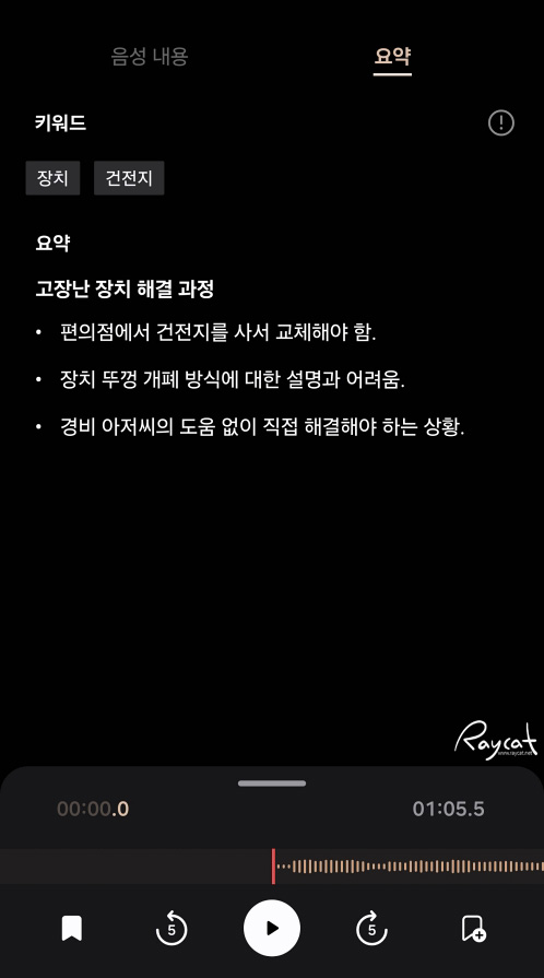텍스트 변환 작업이 끝나면 다시 이 통화 내용을 요약해 아래처럼 볼 수 있습니다.