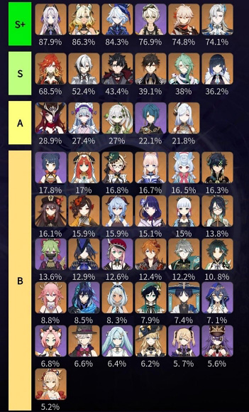 나타 캐릭터들 그리고 폰타인에서 생계를 사용하며 자힐이 가능한 캐릭터들의 픽률이 올랐는데 힐러들도 중간중간 눈에 들어옵니다.