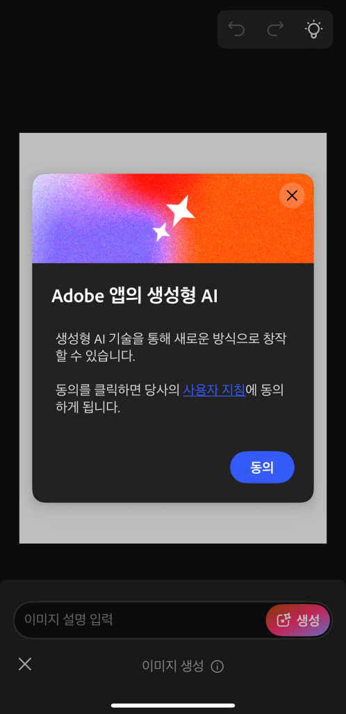 아도비에서 제공하는 생성형 AI도 그대로 사용할 수 있으며 이미지를 만들 수 있는 기준은 기존 아도비 계정과 같습니다.