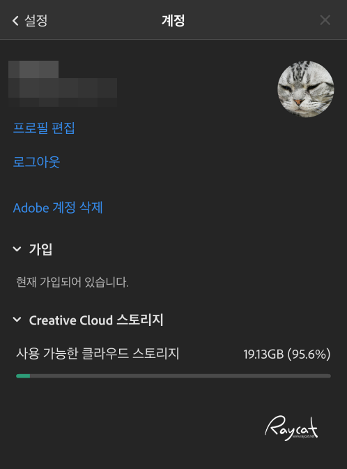 참고로 저는 PC에서 Adobe Creative로 구독제를 사용하고 있어서 기존 아도비 계정으로 연결해 기능을 모두 이용할 수 있습니다.