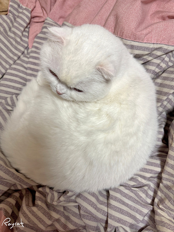 구석 한쪽에 누워 자면 괜찮은데 꼭 가운데 자리를 차지하고 누워있기 때문에 늘 자고 있는 고양이를 깨워서 침대에서 밀어낸다.