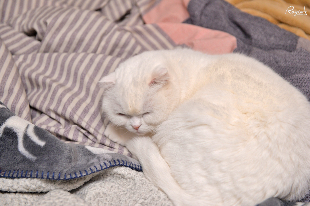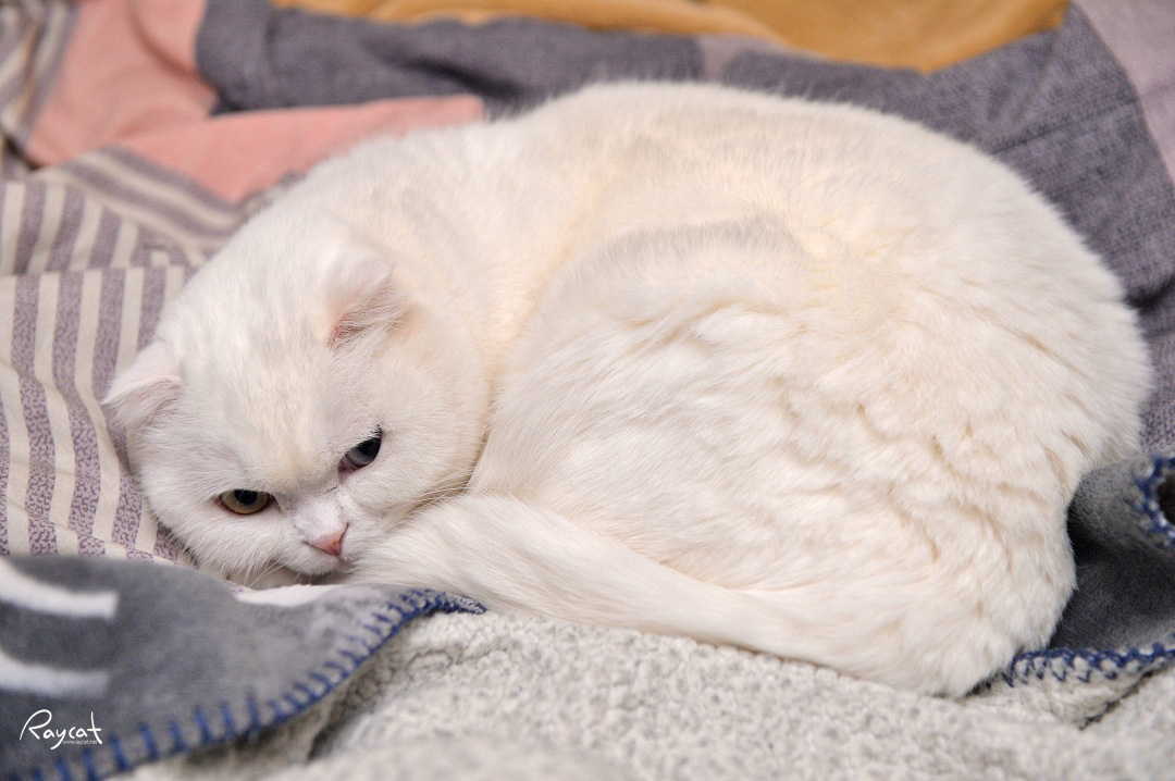 전기장판에 몸을 밀착하고 잠들어있는 고양이 ~