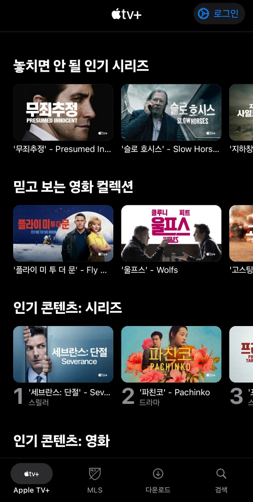 개인적으로 애플 TV를 아이폰 구매하거나 혹은 다른 애플 디바이스를 구매하면 3개월 무료 이용권을 주는 경우가 많아서 그때 사용을 했지만 지금 한국에서 서비스하는 OTT 서비스 중 오리지널 콘텐츠가 적은 편입니다.