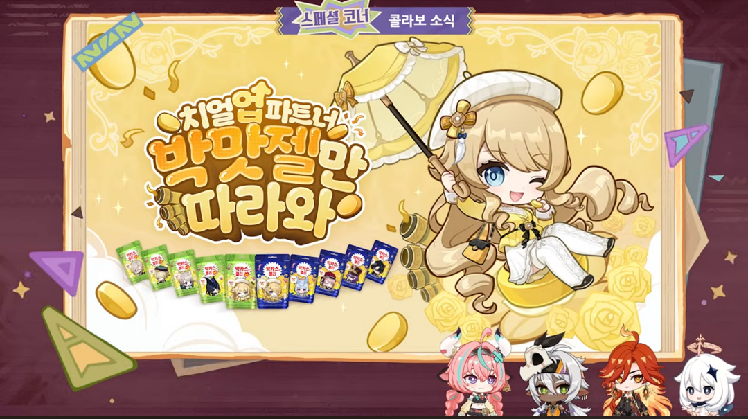 박카스맛 젤리와 콜라보레이션 하며 다양한 원신과 나비아 굿즈를 만날 수 있습니다.