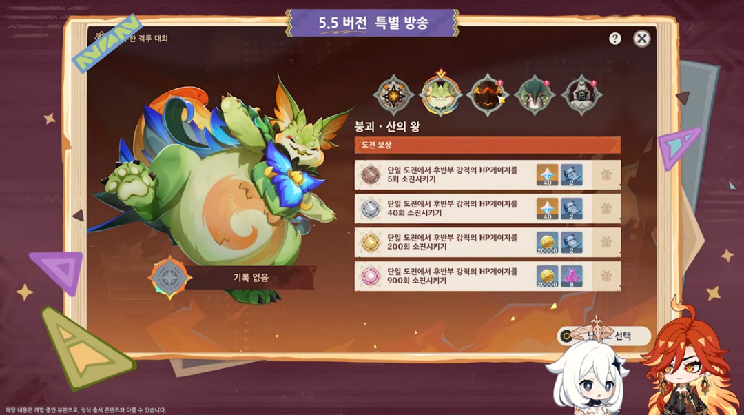 메인 스토리를 제외하면 기존의 미니게임과 비슷해 보이지만 업그레이드 되거나 추가된 게임도 있으며 지난 버전부터 도전 전투 콘텐츠의 난이도가 올라가기 시작했는데 이번에도 도전 전투 콘텐츠가 있습니다.