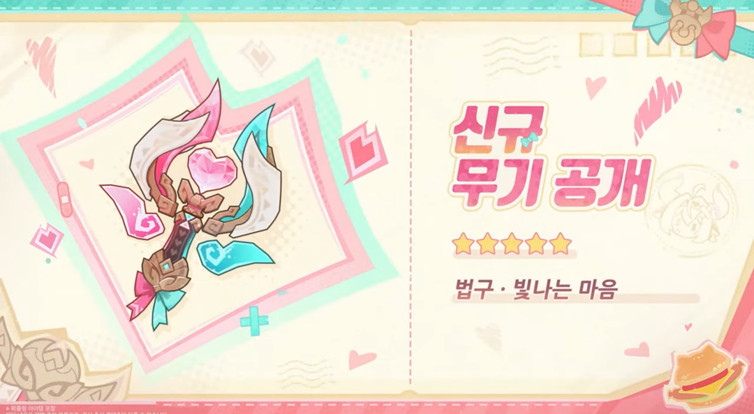 신규무기는 바레사의 전용무기 '빛나는 마음'이 전반부에 있습니다.