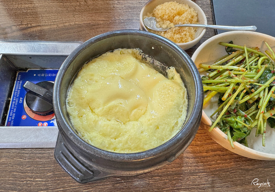 기본 찬이 몇 가지 나오는데 기본 반찬에 날치알, 고추절임, 나물 무침, 김등이 나오며 김은 계속 리필할 수 있지만 날치알과 계란찜은 추가로 주문해야 합니다.