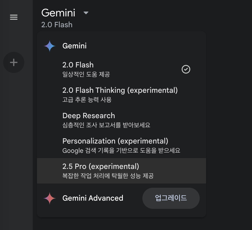 Gemini 2.0 Pro 시절에는 제미나이 어드밴스드 요금제를 구독해야만 쓸 수 있었는데 이제 프로 모델도 유료 요금제를 구독하지 않아도 몇 번 정도는 무료로 사용할 수 있게 됐습니다.