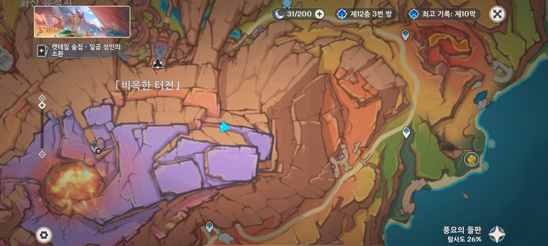 화산지대는 차스카 아니면 실로닌이나 바레사와 같이 벽을 타고 빠르게 이동할 수 있는 이동기를 가진 캐릭터를 파티에 넣고 이동하는 게 좀 더 편합니다.