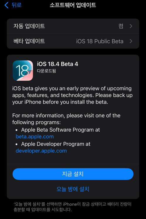 우선 '나의 찾기'를 아이폰에서 활성화하려면 iOS18.4로 업데이트해야 합니다.