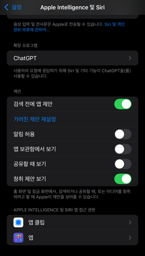 한국어가 지원되고 한국어에 대한 테스트를 해보니 아직까지 애플 인텔리전스는 한국어가 좀 어색합니다.