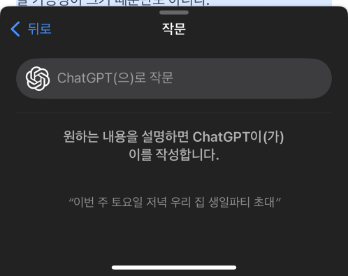 그리고 애플 인텔리전스와 연동되는 챗GPT의 도움을 받아 문장을 만들 수 있습니다.