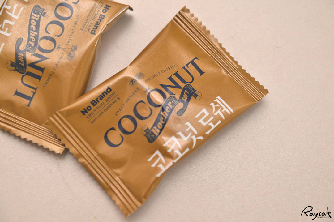 크기는 위 사진 정도로 한입에 먹기에 적당한 크기로 개별 포장을 뜯어보면 코코넛 향이 강하게 납니다.