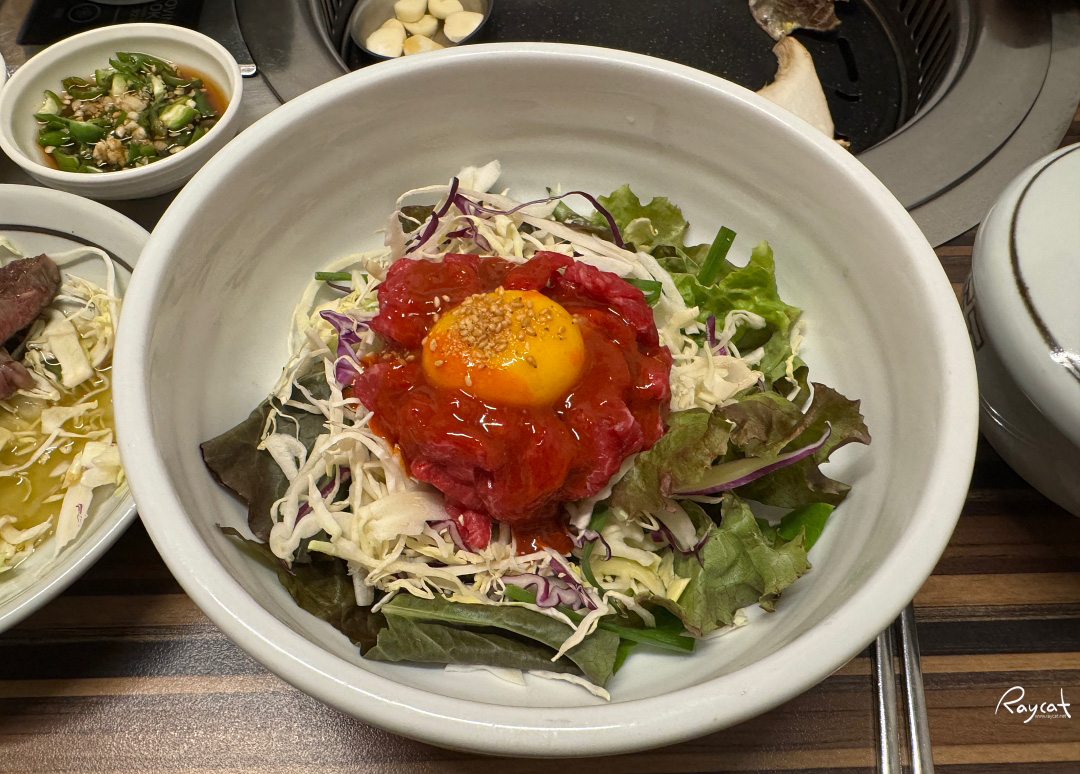 이날 우리가 주문한 메뉴는 여러 부위가 함께 나오는 '오늘 뭐 먹지'와 육회비빔밥을 주문했다.
