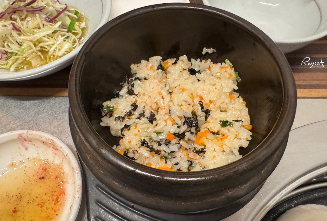 따로 밥을 주문하지 않아도 고기만 먹어도 상차림에 맛보기용 알밥이 있어서 고기를 많이 먹는다면 기본 상차림에 나오는 반찬만 고기와 함께 먹어도 괜찮다.