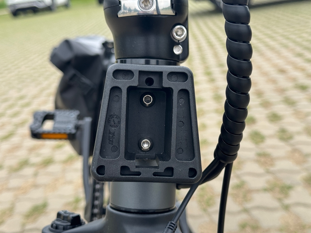 퀄리 프로미니의 전면에 캐리어블록을 설치할 수 있는 홈이 있는데 여기에 맞춰 블록을 설치하면 되는데 브롬톤 캐리어 블록은 여기에 맞지 않지만 호환되는 캐리어블록이 꽤 여러 종류가 있습니다.