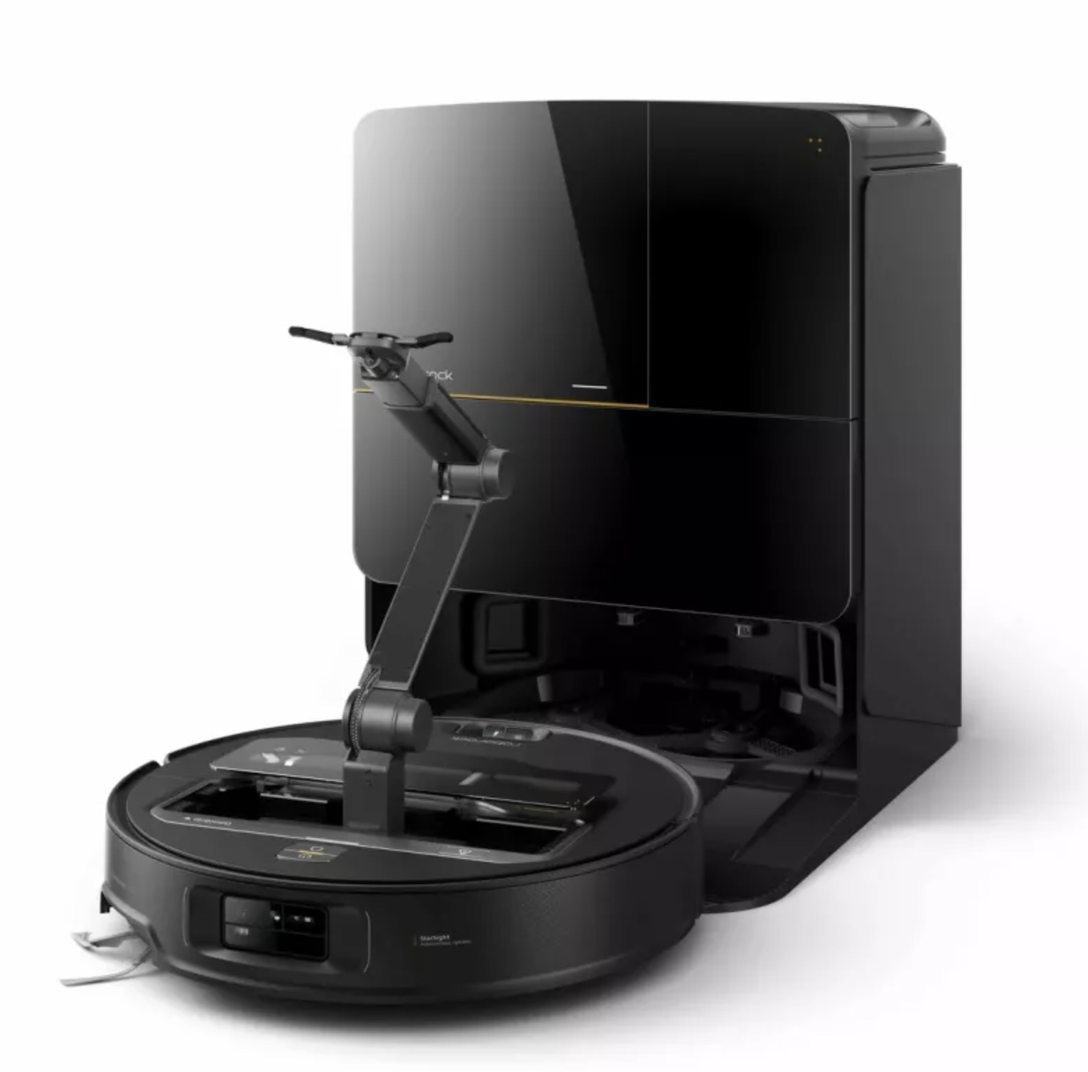 로봇청소기 도크에는 물걸레 세척과 온수 세척, 자동 먼지 비움, 2.5시간 고속 충전, 온풍 건조 기능까지 갖추고 있습니다.