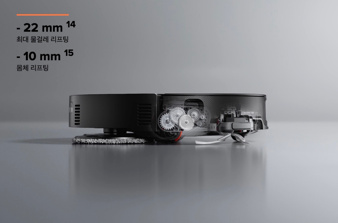 로봇청소기 도크에는 물걸레 세척과 온수 세척, 자동 먼지 비움, 2.5시간 고속 충전, 온풍 건조 기능까지 갖추고 있습니다.