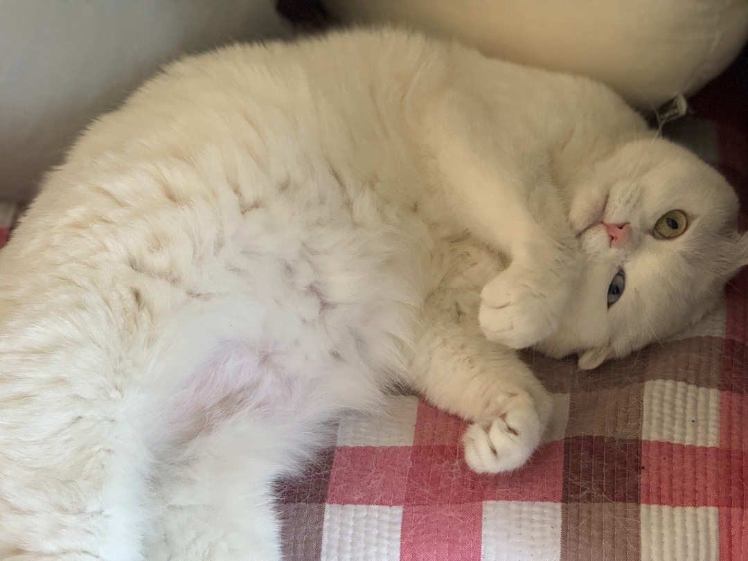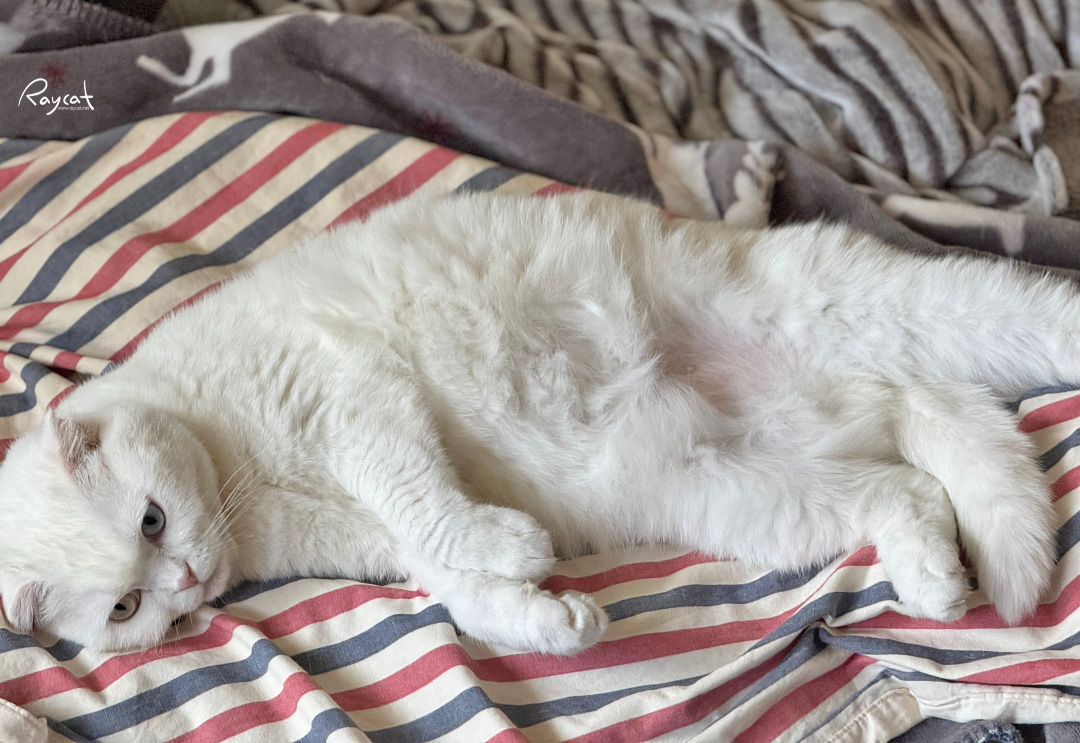 여름 이불을 꺼내 깔았더니 나보다 먼저 달려와 발라당하고 누워버리는 일월이다.
