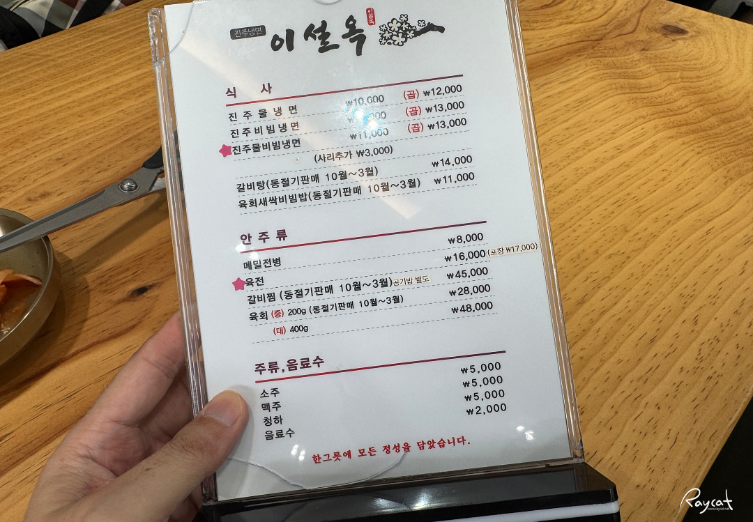 이곳도 여름에만 방문하는 식당중 하나로 냉면과 육전을 파는 진주냉면 이설옥이다. 이름의 유래는 잘 모르지만 상호에서 알 수 있듯이 진주에서 시작한 곳인 것 같다.